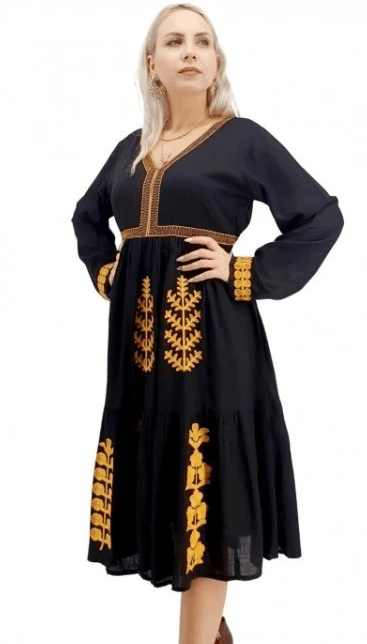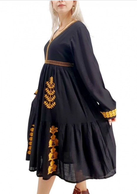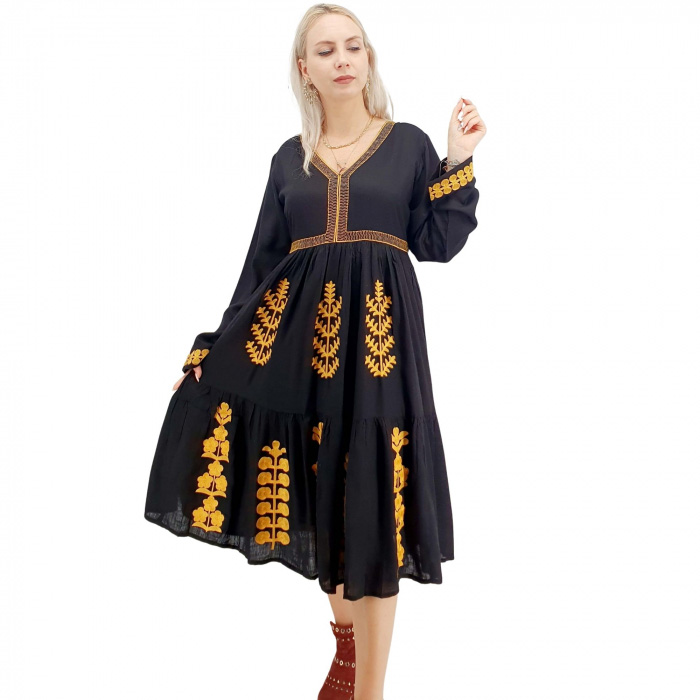 Rochia este dublata, maneca lunga. Rochie lejera la purtat. Bumbacul are multe avantaje, cum ar fi capacitatea de a controla umiditatea, de a izola, de a oferi confort și este, de asemenea, hipoalergenic, rezistent la intemperii și este o țesătură durabilă. Bumbacul este absorbant în mod natural și nu prezintă transpirație la fel ca materialele sintetice și vă ajută să vă mențineți uscat în mod natural.