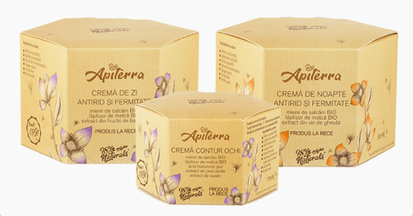 In produsele Apiterra se foloseste doar miere de salcam, miere de tei si laptisor de matca BIO. Acestea sunt pure si provin de la stupine ecocertificate din zone nepoluate ale Transilvaniei. Produsele au ingrediente active cu studii clinice de eficacitate, sunt testate dermatologic, sunt realizate in laboratorul propriu printr-un procedeu la rece pentru a pastra intacte proprietatile acestora.