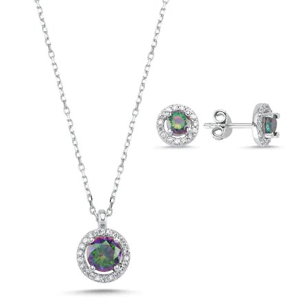 Set bijuterii din argint cu zirconii topaz mistic. Placare: Rodiu. Inchidere: Tip bijuterie. Pietre: Zirconiu.