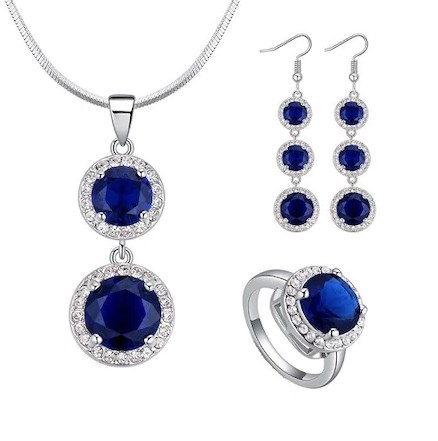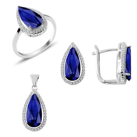 Set pandantiv, inel si cercei din argint, cu zirconiu albastru