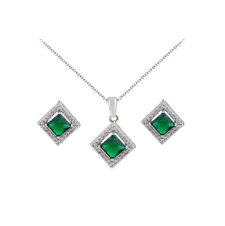 Set din Argint ” Kavala ”, format din Colier si Cercei, placat cu Rodiu, incrustat cu Cristale Zirconiu si asortat cu Smarald verde. Un set elegant de bijuterii ce va pune in evidenta tinutele dumneavoastra indiferent de moment.