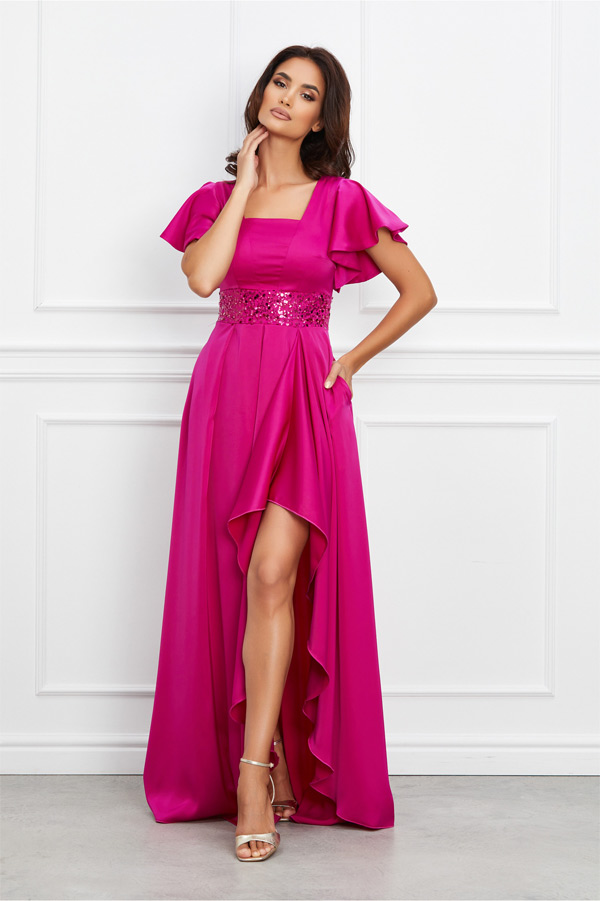 Rochie lunga fucsia cu paiete in talie si crepeu maxi -10%