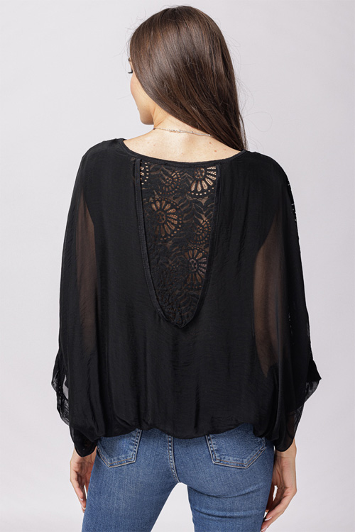 Bluza din matase naturala neagra, cu decolteu in V si dantela pe spate