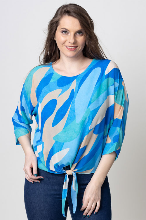 Bluza din voal masura mare, imprimeu albastru electric