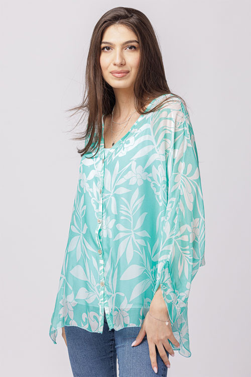 Bluza din matase naturala in colturi cu imprimeu pictural