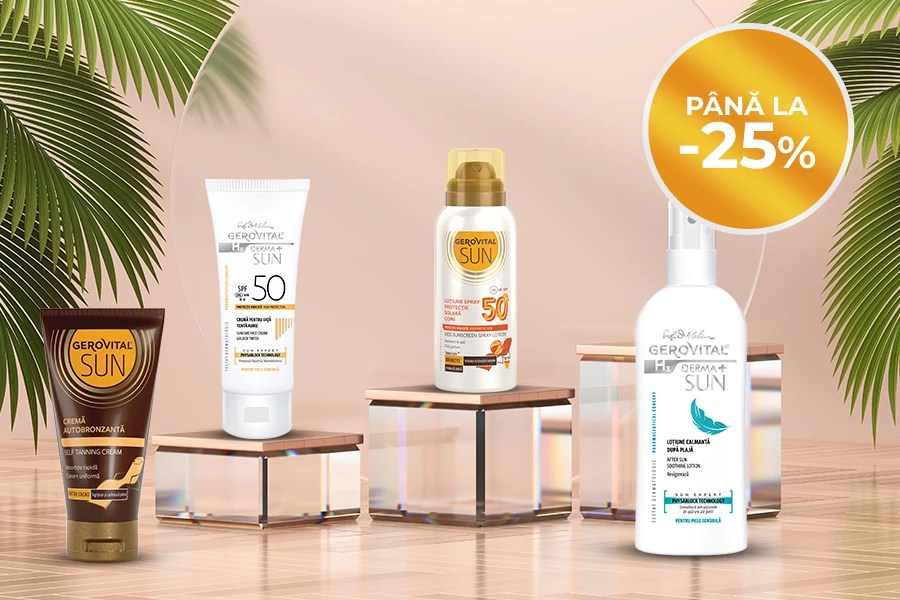 - 20% Reducere la produsele din gama Gerovital Derma+ Sun