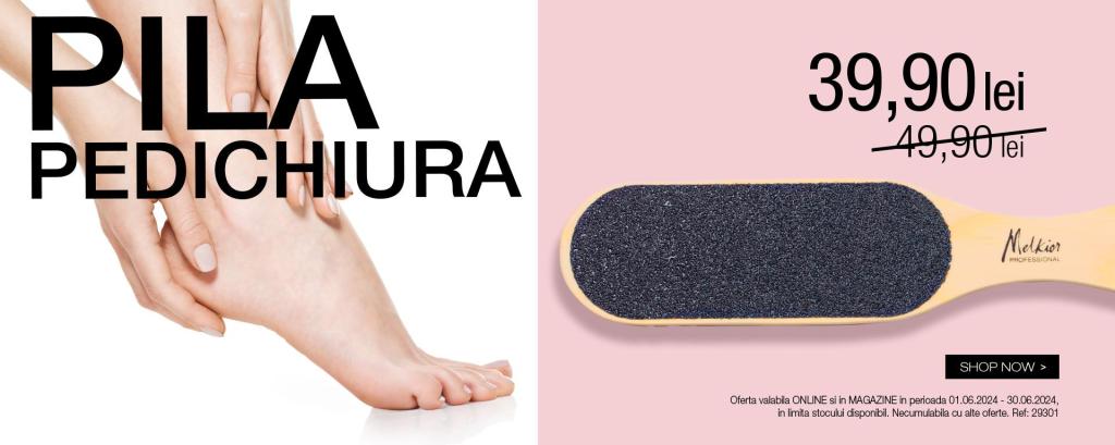 Îngrijirea picioarelor nu a fost niciodată mai ușoară și mai accesibilă! În luna iunie, Melkior oferă Pila pentru Pedichiură la un preț special, atât online, cât și în magazine. Dacă vrei să îți păstrezi picioarele netede și sănătoase, acum este momentul perfect să investești într-un produs de înaltă calitate, ideal pentru îndepărtarea calozităților.