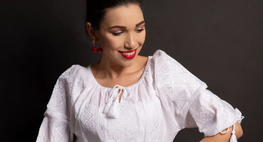- Ie modernă cu motive geometrice – O combinație perfectă între tradiție și stil contemporan.