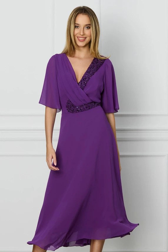 Strălucește cu Eleganță: Rochia Luana Mov cu Paiete pentru persoane plinuțe