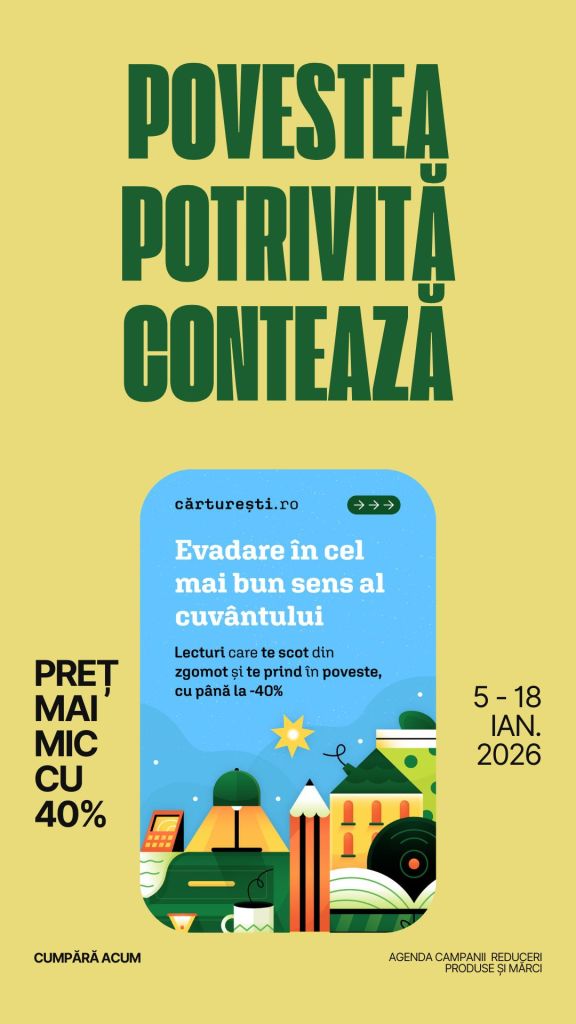 În 2026, îți urăm să începi anul cu povestea potrivită! Cum niciun an nu seamănă cu altul și cum fiecare istorie personală are propriile ei coordonate, așa sunt și propunerile noastre pentru noul an: răsfoiește selecțiile noastre și alege cărțile care te feresc de gândurile rele, cu idei pe măsura noilor tale planuri, cu acele cărți care te ajută să dobândești obiceiurile care îți fac bine, care te ajută să pui o pauză exact acolo unde ai nevoie! Pentru un 2026 plin de lecturi și obișnuințe care te inspiră să fii mai bun!